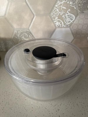 The OXO salad spinner is super easy to use and dries out the lettuce fast. I love that it can be used as a bowl too so it saves time and dishes. I love that it’s used as a colander too with even veggies I can wash them while spinning them dry all in one place. You can fit a lot into the bowl and drains easily. It’s very easy to store and take apart if you wanted to use it just as a bowl.