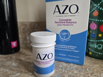 [This review was collected as part of a promotion.] I tried AZO Complete Feminine Balance Daily Probiotic because, as a person wishing to be healthier, I like taking a daily probiotic, and as a woman, I like combining it with a supplement that promotes and restores natural good bacteria and yeast for better vaginal health. It's amazing that it works within one week! It's so helpful that it comes in 60 easy to take capsules one a day, that provides a two month supply. It's even safe to take when pregnant, and that's when I've had the most vaginal health fluctuations. I've also researched about the four types of lactobacilli in the capsules and feel good about adding AZO Complete Feminine Balance Daily Probiotic to my daily health regime.