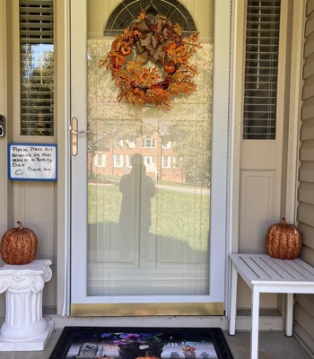 I really like the way the wreath is looking on our black door. Although I added orange micro lights to it and like it even better.