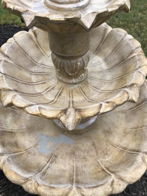 [This review was collected as part of a promotion.] Arrived with various chips in the fountain, and the door to the pump would not stay on/attached, but these issues didn’t seem to affect the overall performance, so I didn’t complain. However, after having the fountain operating for a little over 2 weeks, there’s been a MASSIVE amount of paint that has chipped off the fountain/into the water, and it continues to get worse every day. This brand new fountain looks like it is actually several years old/was improperly cared for, which is very disheartening as I take very good care of items that I own and it’s a bit embarrassing to have an item like this in my yard. I am going to stop using it as the paint chipping situation is dangerous for the wildlife that use the fountain, and the pump door continually falling off creates a hazard.