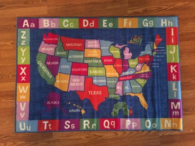 [This review was collected as part of a promotion.] I am beyond excited about this Eric Carle - US Map with Alphabet Educational Blue Area Rug. It is the perfect size for our toy room. What's even better is that my oldest son as been learning about the states and my youngest is learning his letters.