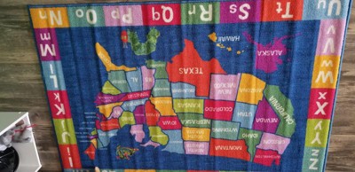 [This review was collected as part of a promotion.] I was so excited to receive this United States rug! My son is obsessed with learning the states right now. Added bonus is the alphabet all the way around. The colors are bright, words are sharp and detail is on point.