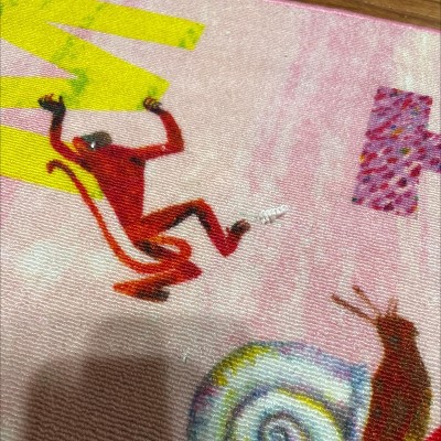 Very cute rug, looks great in my girls’ playroom. It’s soft enough, where you can sit on it and be comfy but not too high pile so it’s easy clean up.