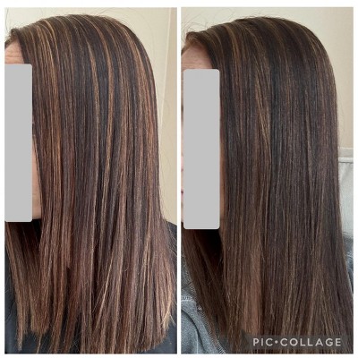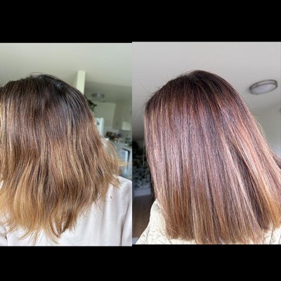 Love this! My hair is shinier and the tone is beautiful, almost as good as toning from my salon. The after picture is a bit darker but I absolutely love it.