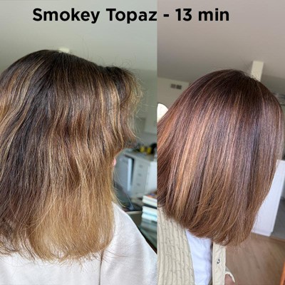 I used the Smoky Topaz for 13 min to help refresh my hair. I have highights and have been dying by greys at home, but the high/low leves were getting too harsh. Overall I like the results. It definately picks up a almost deep purple/pink hue (I noticed this in some of the pics online), but I dont think most people really notice that. I'll see how it fades and go from there.
