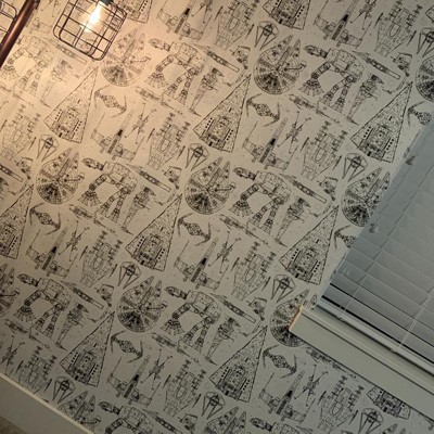 the wallpaper looks fantastic in our boys' room. any star wars fan will love it!