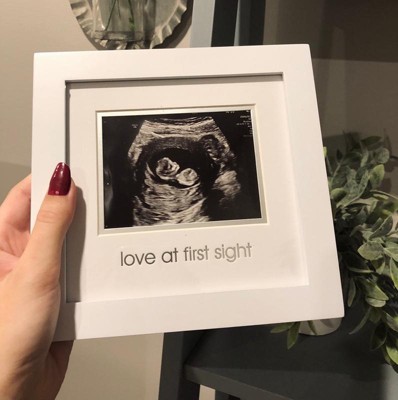 [This review was collected as part of a promotion.] The frame is made very well and feels durable. I was a little surprised by how heavy it was for a small frame so that's a good sign. I like how simple it is so the sonogram really pops when displayed. It's just a plain white shadowbox frame with a "love at first sight" stamped in silver on a cardstock like mat. It includes a hanger as well.
