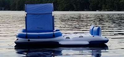 [This review was collected as part of a promotion.] This inflatable boat was easy to set up and take down. It is bulky but man is it fun! Size wise, it is words better on a lake or wide river. We found that on a windy day the canopy blew around. Make sure you tie the canopy down along with making sure the poles are seated all the way in the holsters if you don't want to go swimming after it. Definitely going to get an anchor for it. We were able to hold 4 adults and 3 kids without problem. I love the mesh bottom for my toddler who could enjoy the water with us safely.