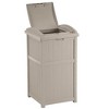 Hide your trash in this stylish outdoor Suncast Trash Hideaway Outdoor Patio 33-Gallon Trash Can.