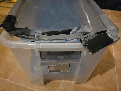 Excellent Large Stackable 70 Quart see thru tote.