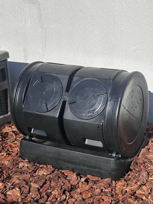 Good Ideas Large Plastic 7 Cubic Foot Capacity Compost Collecting Wizard Outdoor Garden Dual Tumbler Compost Container Tank, Black
