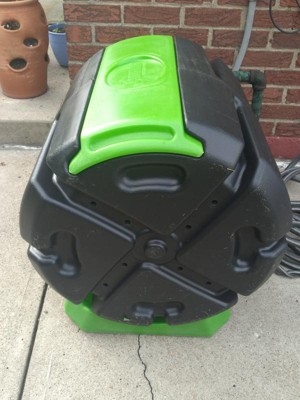 The jury is still out on this one. My husband selected it because it didn't have the flimsy stand other tumbling composters have; it's just a drum with a door that sits on a base. To empty it, you have to turn the door to the ground and scoop out the compost or empty it onto the ground. The sliding door is difficult to open, and pushing it makes it slide off the base. Once I have more compost cooking inside, it may prove to be less prone to sliding sideways, but then I'm not sure how easy it will be to tumble. It appears to be pretty sturdy, which is good because it may need to be rolled all over the yard to get the compost to the garden beds.