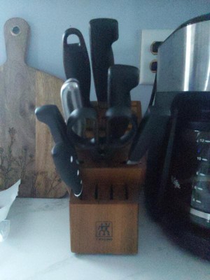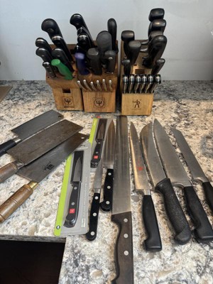 We bought this as a housewarming gift for our son who recently graduated from University. He wanted a set of “good knives” and these fit the bill perfectly. We have a similar Zwilling set that we have had for 5+ years.