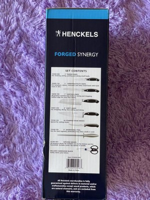 [This review was collected as part of a promotion.] I have wanted a set of HENCKELS knives for a very long time so this year I took the plunge and bought the FORGED SYNERGY set. While the initial 13 PIECE BLOCK SET, which includes steak knives, after using the knives for a short while, I decided to complete the block and order three additional knives. My only complaint and DISAPPOINTMENT is how easily my favorite knife got scratched up while cleaning. It’s the only reason I didn’t give a 5 star rating.