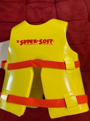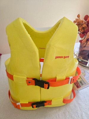 [This review was collected as part of a promotion.] This swim vest is not really soft. They are firm and run big. My son always wears a medium and this vest is big on him. The bright yellow is great because it’s well seen.