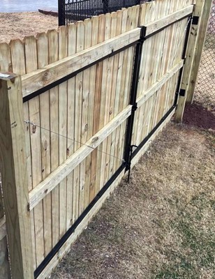 [This review was collected as part of a promotion.] Wasnt sure how this was going to work. Finally i attached to my existing wooden gate in my yard and it did make it more sturdy. Its adjustable so i can always use somewhere else also. Never knew this was a thing but happy i got to try it and use it.