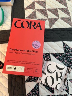 Cora Organic Cotton Ultra Thin Regular Fragrance Free Pads with Wings for Periods - Regular Absorbency - 32ct