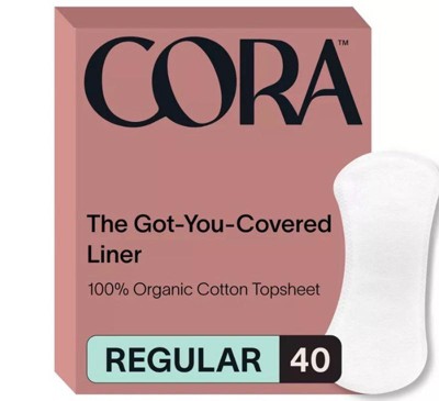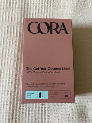 Cora Organic Cotton Ultra Thin Panty Liners for Periods - Regular Absorbency - 40ct