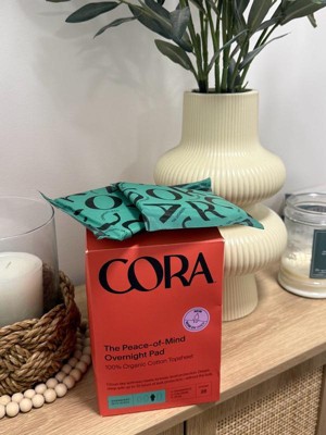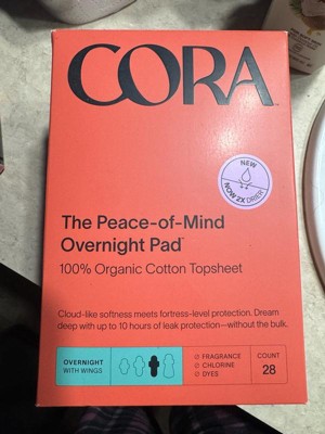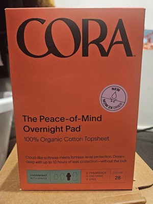 Cora Organic Cotton Ultra Thin Overnight Fragrance Free Pads with Wings for Periods - Overnight Absorbency - 28ct