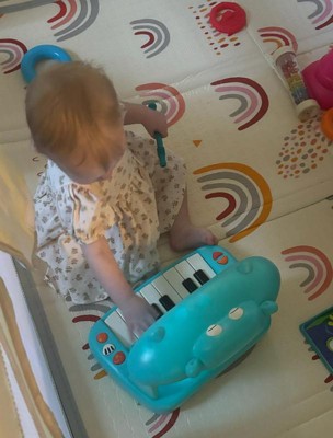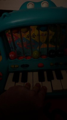 Have twin daughters (18 months), both are obsessed with music. While one has taken to percussion, the other has been OBSESSED with the hippo keyboard. I’m only giving it four stars for two reasons. #1- I’m on my 2nd keyboard, she broke the first one. Not totally a design flaw as this child is a madman and is constantly on the move and used to step on it when she’d get excited about this or that. #2- this what actually is taking the star off- there’s a function on it that if you press a certain button, every time you press any key it advances a song (I think it’s usually London Bridge is falling down). Since she figured out that she can play a melody (I used her hand to play half of “chopsticks” and had her play through “bubble bubble bubble” and now she tries to play it by herself) she gets upset cuz the keys don’t play what she wants them to. I get that it’s a kids toy but I wish there was a way to disable this function.