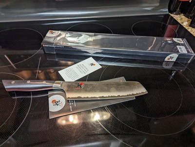 [This review was collected as part of a promotion.] This knife is great! It's super sharp for cutting vegetables. It's perfectly balanced in your hand and feels durable. I'll definitely be adding more Miyabis to my collection.