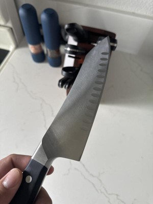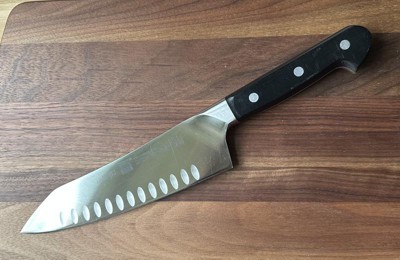 [This review was collected as part of a promotion.] I’ve never used a Santoku but after trying to find a good knife for our vacation home, the sales person talked me thru a bunch of options. The Santoku is perfect! Works like my chef knives at home but chops even better. I like the weight and heft of it and will now be buying one for my other home!