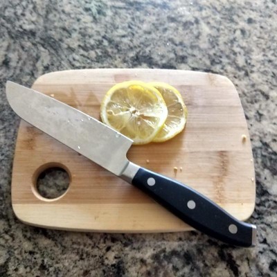 This 5 inch hollow edge knife is great for chopping, slicing, etc. The hollow edge helps resist food sticking to the blade. The handle provides a great grip and comfortable handle at a very affordable price.