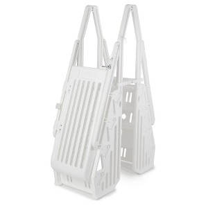 Vinyl Works AF Adjustable 24 Inch Ladder for Above Ground Swimming Pools with Secure Gate Closure and 2 Deck Mount Flanges, White