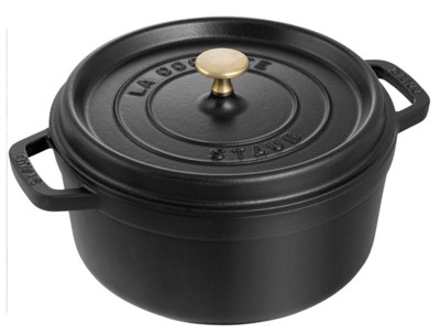 Staub Cast Iron Round Cocotte, Dutch Oven, 4-quart, serves 3-4, Made in France, Matte Black