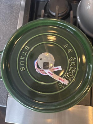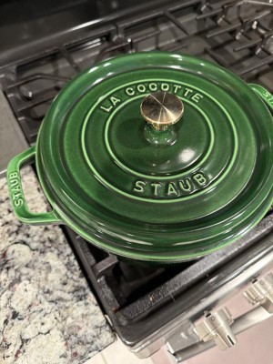 I absolutely love my Staub Dutch oven in Basil with the brass top — it’s quickly become one of my most used and admired pieces of cookware. Right from the start, the basil green color paired with the brass knob gives it such a beautiful, timeless look — it’s almost too pretty to put away but also perfect for serving straight at the table. What really impresses me is how well this pot performs in the kitchen. The enameled cast iron construction heats evenly and retains heat beautifully, so everything from slow-braised meats to hearty stews and soups comes out rich and tender every time. The tight-fitting lid with self-basting design helps lock in moisture and flavor — I always notice juicier, more flavorful results compared to other pots I’ve used.  Cleanup is a breeze too — the enamel interior resists sticking and staining better than I expected, and while hand-washing keeps it looking its best, it’s forgiving enough for everyday use. What started as a splurge has honestly become a kitchen essential. If you love cookware that looks gorgeous and performs brilliantly every time you cook, this Staub is worth every penny. Highly recommended!