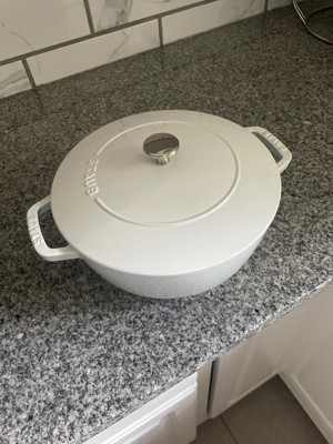 [This review was collected as part of a promotion.] I love the classic color. This is my 2nd purchase of Staub. I chose this one over coccote this time. I find the bottom shape easier to stir into. So happy with this purchase knowing that I can hand this down to my daughter and possibly last a lifetime.