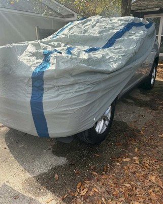 [This review was collected as part of a promotion.] This car cover has a substantial feel to the material and is well constructed. It was a perfect fit for my sister's SUV and she feels better about leaving her vehicle under the carport during inclement weather. I will probably purchase another one as soon as I decide what kind of vehicle to get to replace the car I have now.
