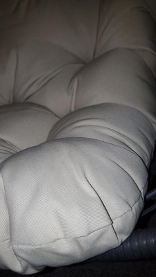 [This review was collected as part of a promotion.] We currently have this hung inside since the weather isn't nice but it's a perfect cozy porch chair too. The cushion is made of nice durable material and looks great. It only took a few steps to put together and feels sturdy.