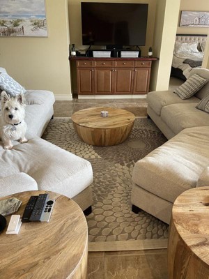 We recently purchased this rug and it goes perfect with our decor. The rug is high quality and very comfortable. So comfortable our cat loves to lay on it. The design is very pleasing to the eye and we have gotten tons of compliments.