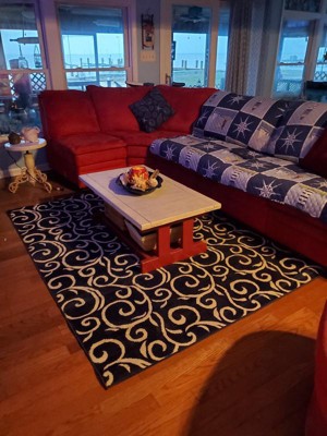 The area in my sitting room with my sectional sofa was missing some thing… So I added this beautiful blue designed 5 x 7 area rug and it gave this area such a pretty POP! Soft, pretty, just the right size, and love the design and background shade of blue. Now looking for same effect in 2 bedrooms.