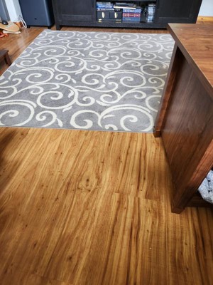 I bought this rug about two months ago for my basement. It lays flat right off the roll with very little effort (can’t say the same about rugs by other makers!). The scroll pattern is calming and pleasing to the eye. It makes the plaxe feel more homey right off the bat. I bought another of the same to cover another part of my basement and would have bought a larger size if it had been in stock. Very pleased!