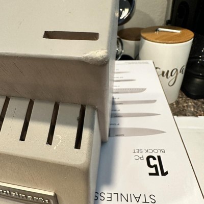 Hello- Thank you for taking the time to share your review with us about your Cuisinart knife set. We have taken note of the information you shared about the unit as we are always looking to make products that exceed expectations. We always appreciate our consumers reaching out to us about ways we can improve.