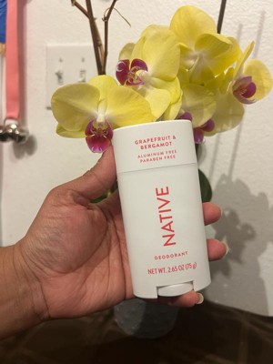 [This review was collected as part of a promotion.] I've been using this Native Aluminum-Free Deodorant in Grapefruit & Bergamot and I love it! The fresh, citrusy scent is invigorating and bright, giving me a clean feel every time I swipe it on. It goes on smooth with a light texture that doesn't feel heavy or sticky, and absorbs quickly into the skin. I appreciate that it's free of aluminum and parabens, so it feels gentle and kind to my underarms. The performance is solid for a clean deodorant-great everyday odor control without reside, and it feels comfortable all day.