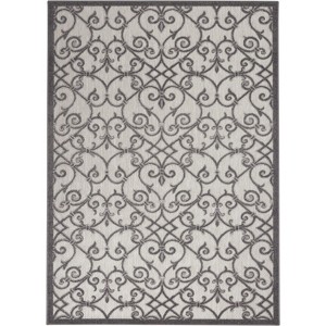 Nourison Aloha Contemporary Scroll Flatweave High-Low Indoor Outdoor Area Rug Grey/Charcoal 5'3" x 7'5"