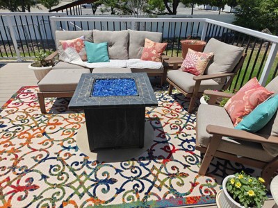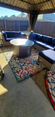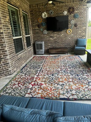 We absolutely couldn't be happier with this rug for our outdoor space. Vibrant colors and easy care. Wish I would have gotten one sooner. It's absolutely beautiful!