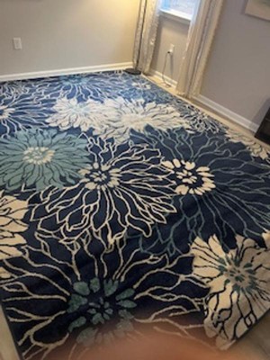 I wanted to replace a red 9 x 12 area rug with a blue one in my living room to align closer with a coastal theme in my home. I also have floral artwork on the walls, so a floral design fits. My first replacement rug purchased was cream with a blue/red design, but that rug smelled and wouldn't lie flat after weeks. It also didn't pop against my light vinyl flooring, so I returned it. I'm happier with the color and design of this rug. It's thicker than my original rug but still benefits from the pad I bought separately. It feels okay beneath bare feet. I took off one star because it is still a bit creased a few days after unrolling it--I'm hoping it will smooth out eventually. I appreciate the instructions included to smooth out the creases.