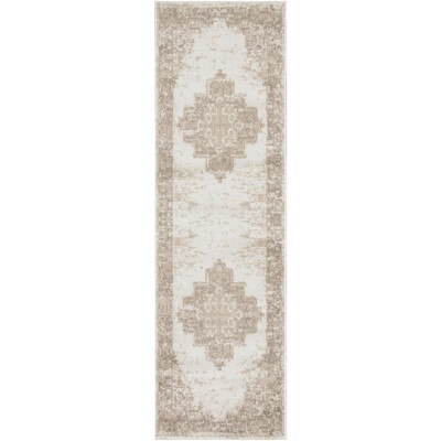 Thought I had scored with this rug because I loved the tones and the price was great. The rug came quickly and was a little more muted in color than online. Like grey with a green tinge. Even worse- it is one of those treads that changes color depending on which way you brush the fabric/rug. So anytime someone walked over it, it looks like it has mud stains all over it. Looked dirty 100% of the time, no matter how much I vacuumed it in the same direction. Major fail.