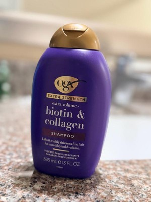 OGX Biotin & Collagen Extra Strength Volumizing Shampoo for Fine Hair - 13 fl oz: Sulfate-Free, Paraben-Free, Liquid Formula