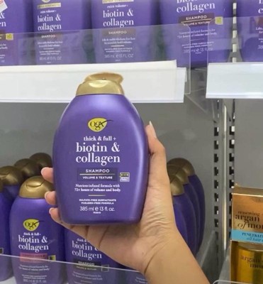 I really love using OGX Biotin & Collagen Shampoo.