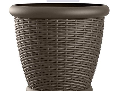 Suncast Willow 18 Inch Diameter Resin Decorative Wicker Patio Planter Pot, Java