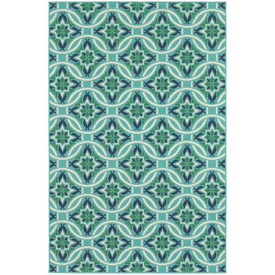 7'10"x10'10" Mia Floating Medallions Patio Rug Beige/Blue - Captiv8e Designs: Outdoor UV-Resistant Area Rug