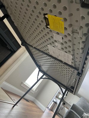 [This review was collected as part of a promotion.] This table was an excellent find. The assembly was very easy and it’s super portable. It seems durable and it’s sit quite a few people comfortably. It was perfect for extra storage during camping and a garage sale!