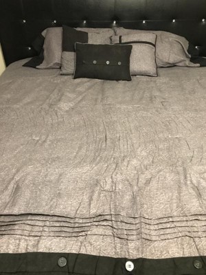 [This review was collected as part of a promotion.] I received this 7-piece faux suede King gray comforter set for free from influenster in exchange for my opinion. It's a very nice pillow set but it just wasn't as thick and fluffy as I thought it was by looking at the pictures they have advertised on the packaging but it's still a really nice comforter set. It fit my bed well. The sheets are comfortable and are of good quality. The fit is good although I've seen better. I could have done without the buttons on the pillow because the buttons on the pillow do make it a little uncomfortable but I usually just throw my pillows on the floor if I have too many of them. I was able to get the gray King set and it fit my bed very well it comes with one comforter two King shams one bed skirt and three decorative pillows which makes this seven piece comforter set and it has different shades of Gray and dark gray with black. I just would have preferred to have the pillows without the buttons on them because the buttons make it a little uncomfortable and also it isn't as thick and full and fluffy as I thought it would have been as shown on the packaging but it's still a good comforter set. It's just a lot thinner in person than what it is on the packaging but it will still keep you warm.