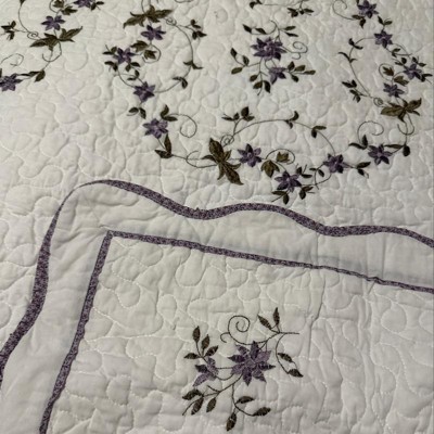 Modern Heirloom Full/Queen Gwen Quilt Set White/Lavender: Embroidered Bedding, 3-Piece with Shams