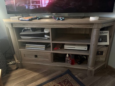 This corner TV stand is a beautifully designed and sturdy piece of furniture that fits perfectly in tight spaces. Guests appreciate its solid construction and the clever fastening system that makes assembly easier, despite the time it takes. The clear instructions and quality hardware enhance the overall experience, making it a great addition to any living room. While some guests faced challenges with assembly, the end result is a stylish and functional unit that meets their needs.
